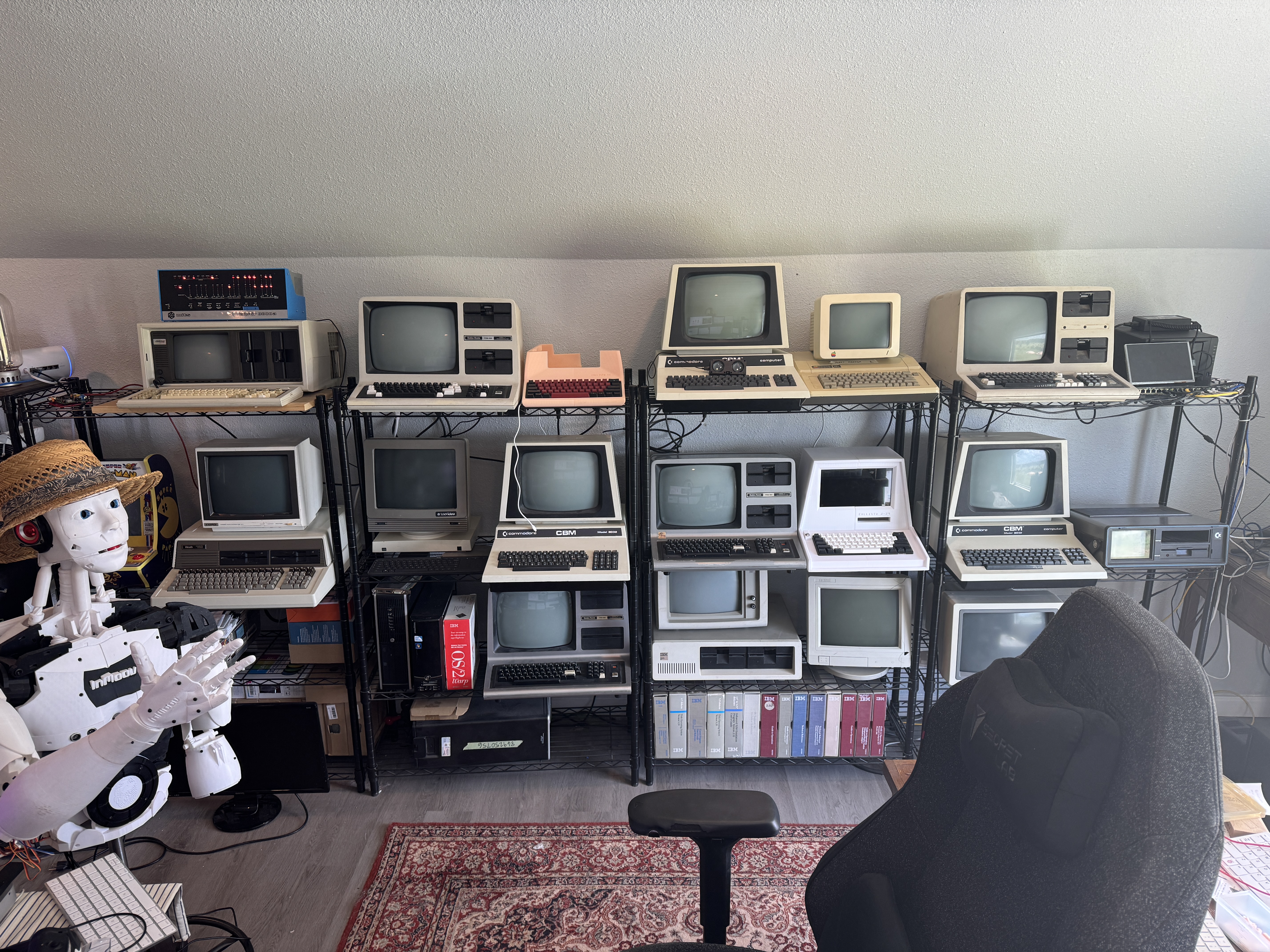 Apple, Commodore, Tandy, IBM and more are represented here, and they all work as expected. I've carefully repaired/restored each and have scoured the inter-webs for interesting and unique software offerings on them, and it's a treasure to see them all running on the wall behind me.